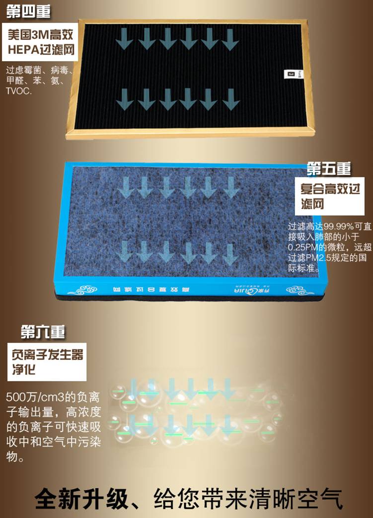 空气净化器是指能够吸附、分解或转化各种空气污染物(一般包括PM2.5、粉尘、花粉、异味、甲醛之类的装修污染、细菌、过敏原等),有效提高空气清洁度的产品,主要分为家用 、商用、工业、楼宇。空气通过正负离子发生器电离成大量的正离子和负离子,正负电荷种和瞬间释放巨大能量,使细菌的结构改变和能量转移而死亡,从而达到物理杀菌和净化的作用!